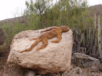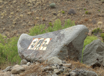 "...los escultores alemanes, Peter Paul Stahns y Maggie Sonnen, nos han dejado unos trabajos fabulosos, dando forma y expreción á unas rocas fijas dentro del Barranco de Pino Seco. El resultado es un deleite para los que pasean pos ese camino, pudiendo ver por sorpresa las rocas trabajadas a mano y en parte doradas..." Boul. G.C., 2013
